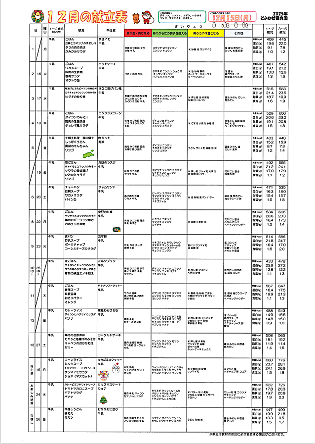 献立表2025年度12月